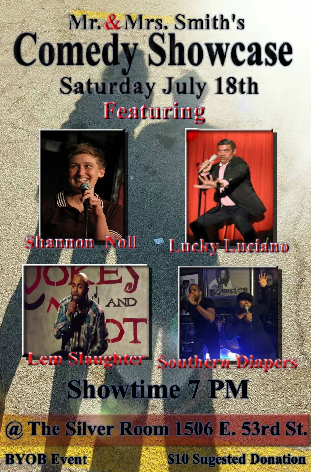 Mr. & Mrs. Smith's Comedy Showcase Saturday, July 18, 2015 7:00 PM 9:00 PM 19:00 21:00 The Silver Room (map) Google Calendar ICS @ The Silver Room
